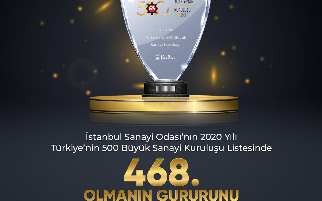 November 17, 2021We share with you the pride of being ranked 468th as Kula Yag ve Emek Yem Inc. in the 2020 Turkey’s Top 500 Industrial Enterprises List of the Istanbul Chamber of Industry.